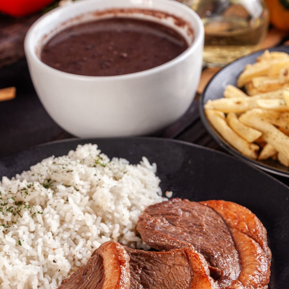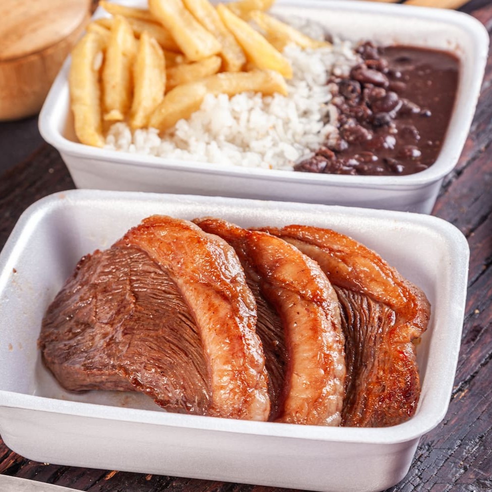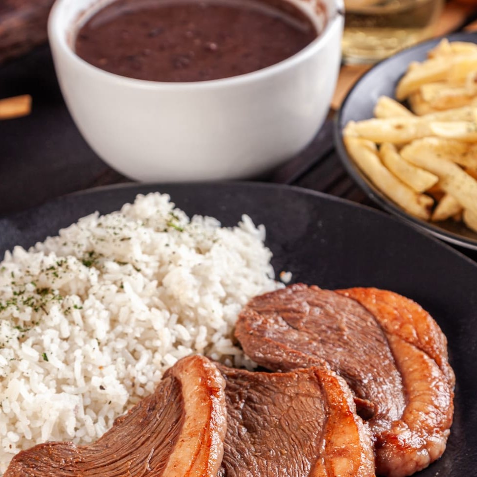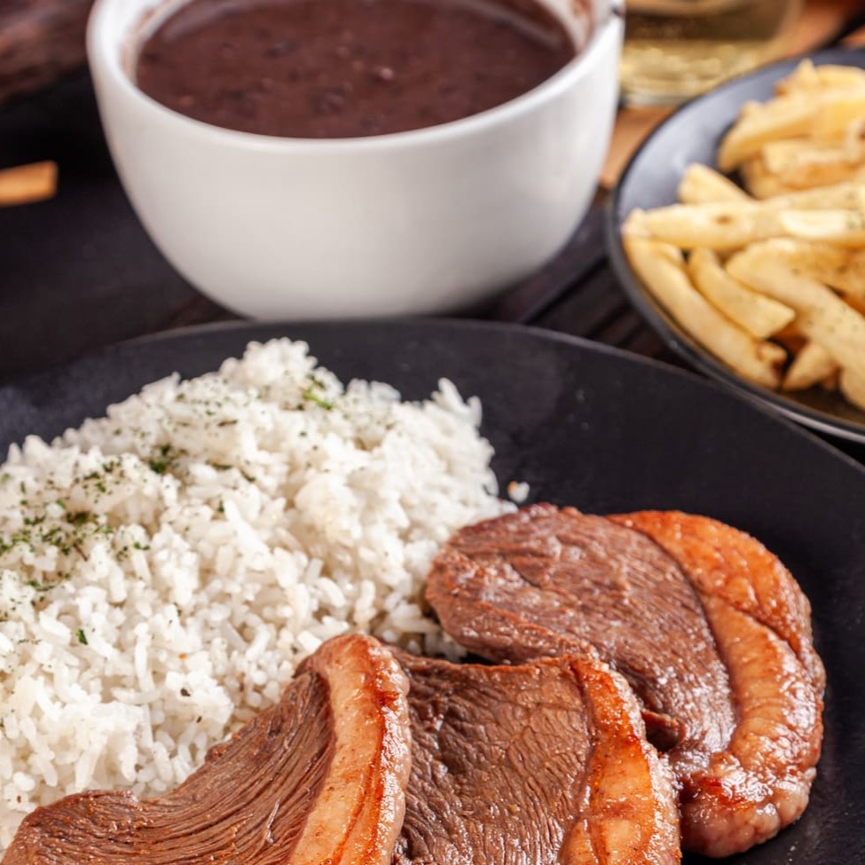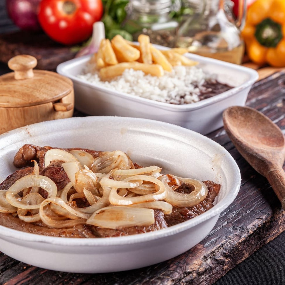 Simples, gostoso e brasileiro. Vem com (200g ) Bife bovino deliciosamente empanados e servidos junto com arroz, feijão bem temperado, 1 acompanhamento a sua escolha. Não fica só na vontade não.