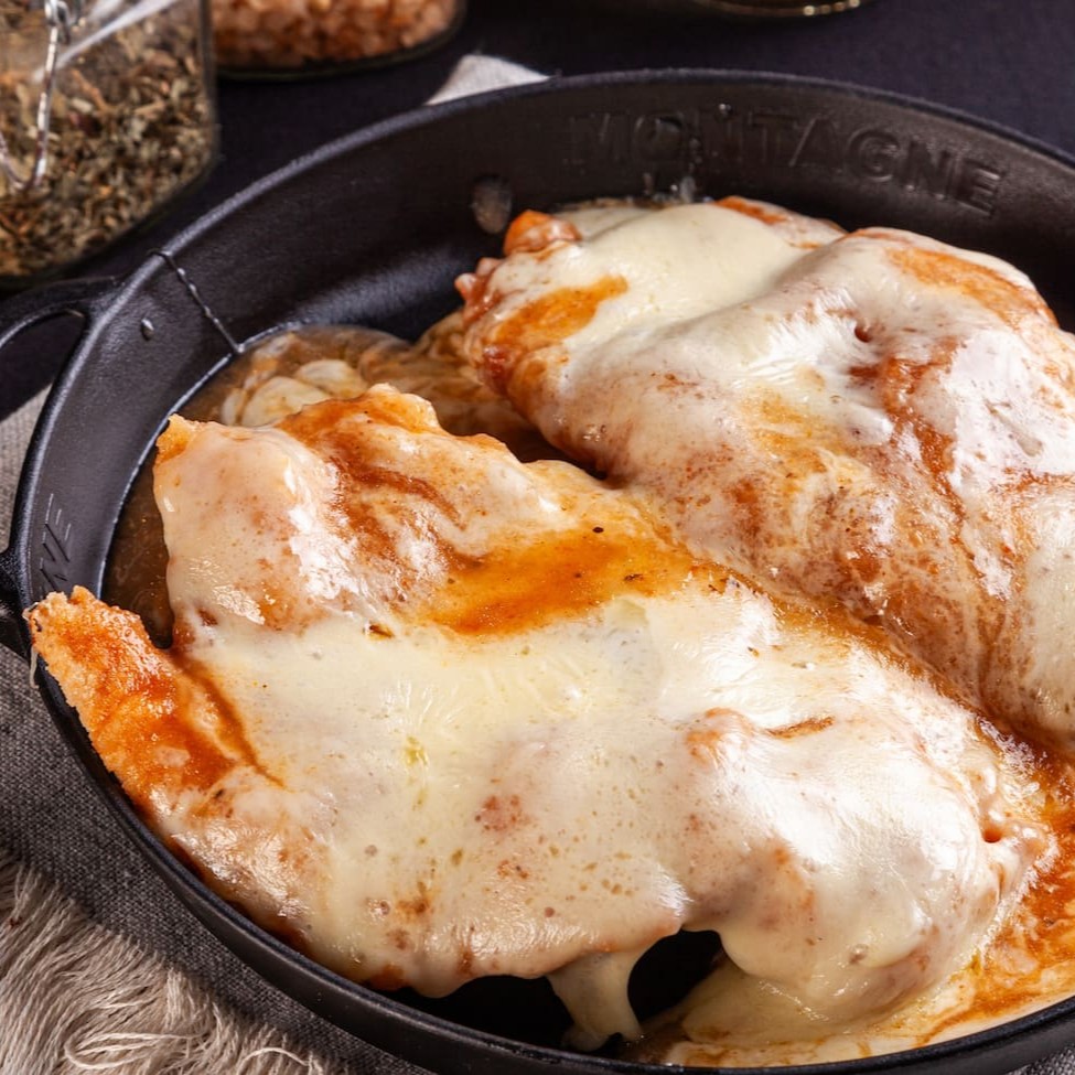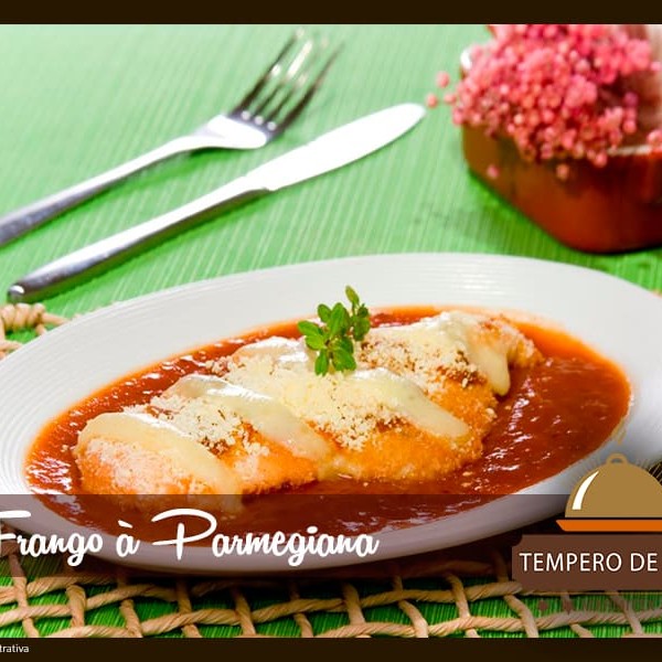 Vontade de parmegiana, né, meus queridos? Frango empanado e coberto com queijo e um suculento molho de tomate. Acompanha arroz branco feijao 1 acompanhamento a escolher .