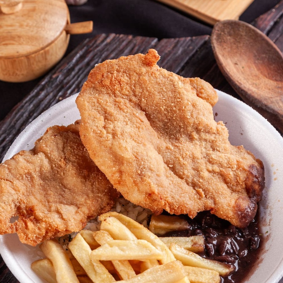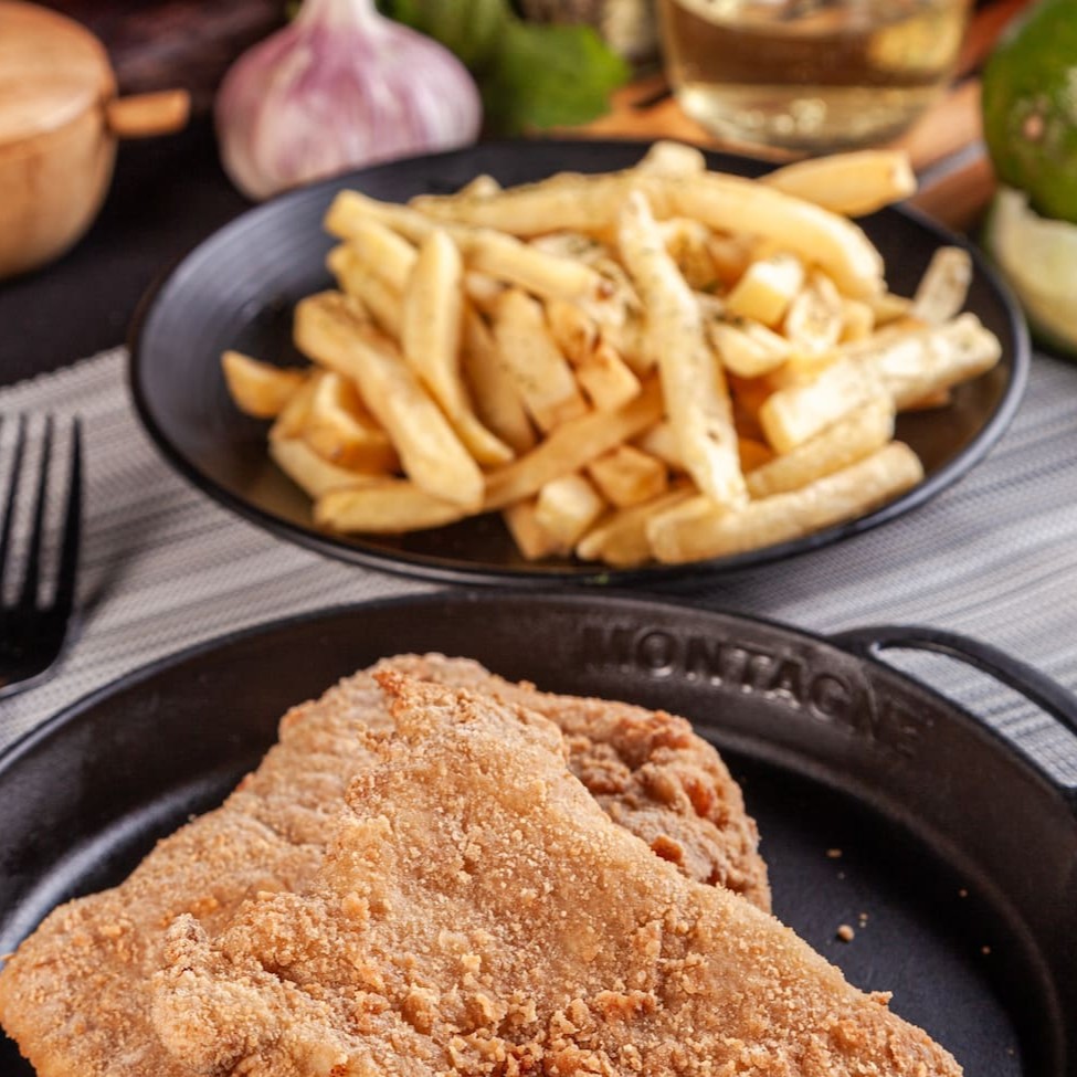 Simples, gostoso e brasileiro. Vem com (200g ) Bife bovino deliciosamente empanados e servidos com bastante Batata frita...