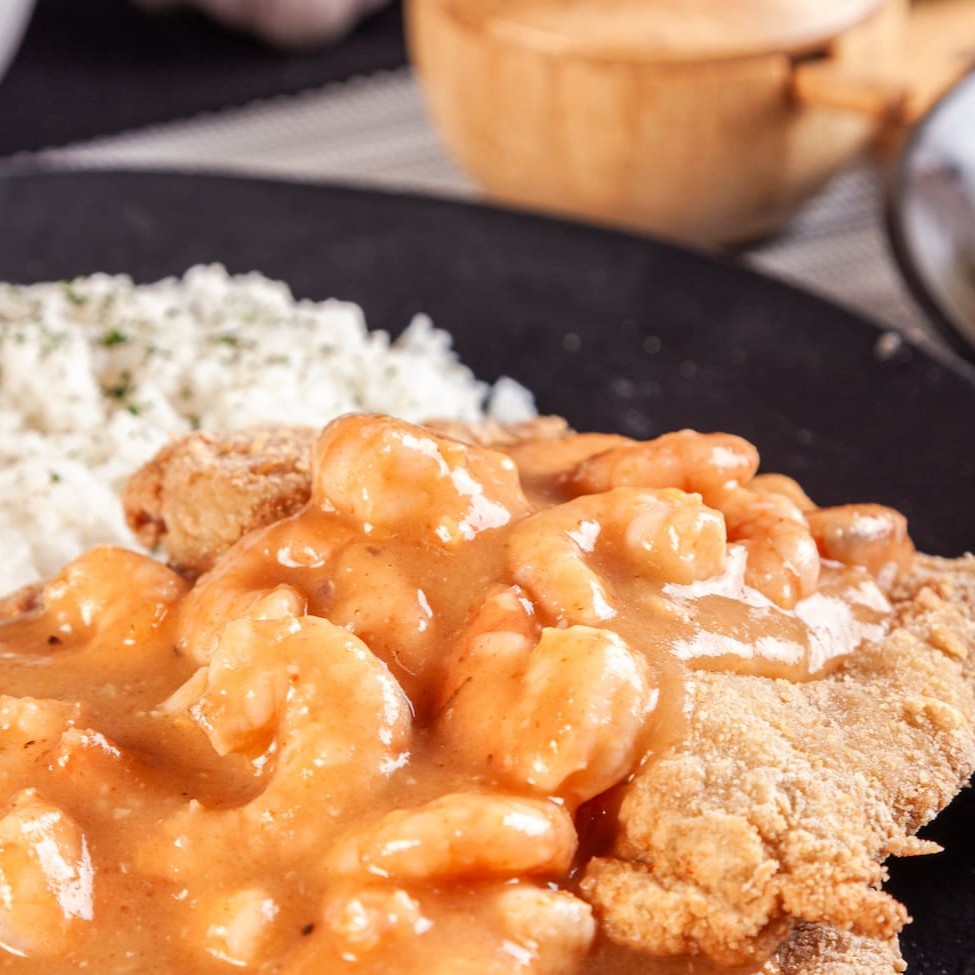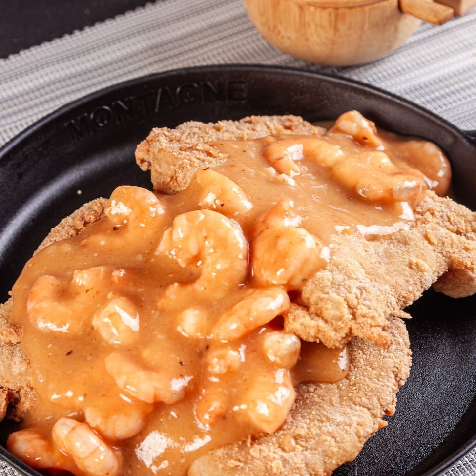 Filé De Peixe A Milanesa Ao Molho De Camarão