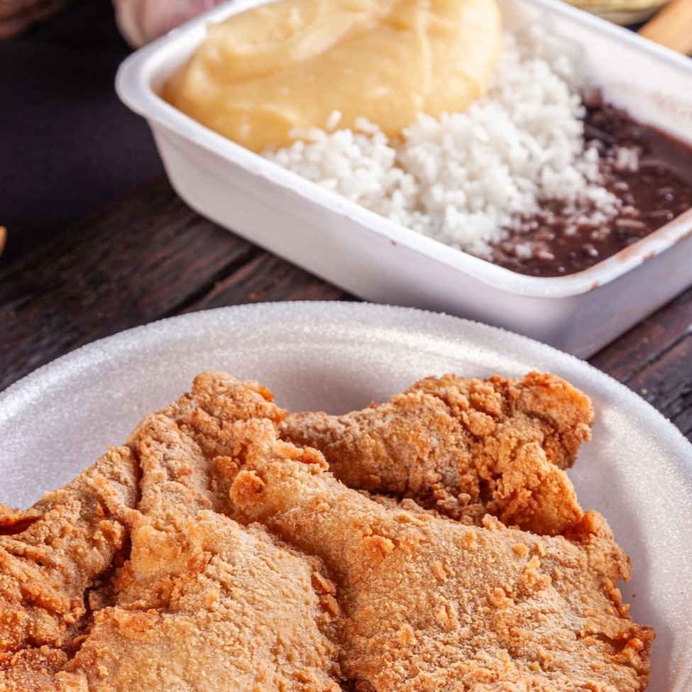 Bom, bonito e baratíssimo, do jeito que o brasileiro gosta! Vem com (200g ) de frango deliciosamente empanados e servidos junto com arroz, feijão, 1 acompanhamentos a escolher.