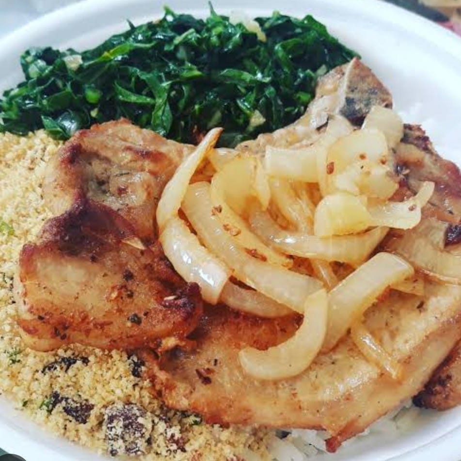 Carré, arroz, feijão, macarrão e farofa e um( acompanhamento)