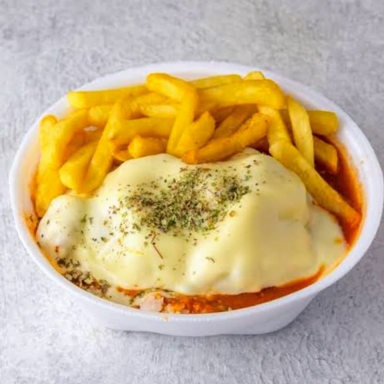 Frango Parmegiana, arroz, feijão, macarrão farofa mais um (Complemento)