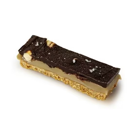 Barra de caramelo salgado com chocolate amargo e avelãs torradas.