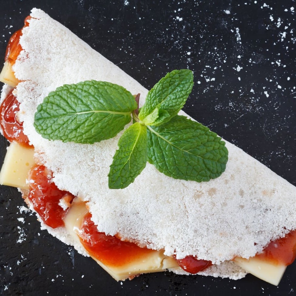 Uma combinação clássica e cheia de charme que une o sabor suave do queijo com a doçura da goiabada cremosa. A tapioca Romeu e Julieta é perfeita para quem aprecia contrastes marcantes e uma experiência doce e equilibrada, com o toque artesanal da nossa massa leve e fresquinha.