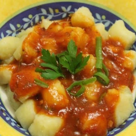 Delicioso Nhoque de Batata recheado com provolone. Nosso nhoque é feito artesanalmente, proporcionando uma experiência gastronômica autêntica e caseira. As batatas são rigorosamente selecionadas, garantindo a consistência perfeita e um sabor inigualável. Este prato é um verdadeiro tributo à tradição italiana, perfeito para quem aprecia uma refeição confortante e cheia de sabor.