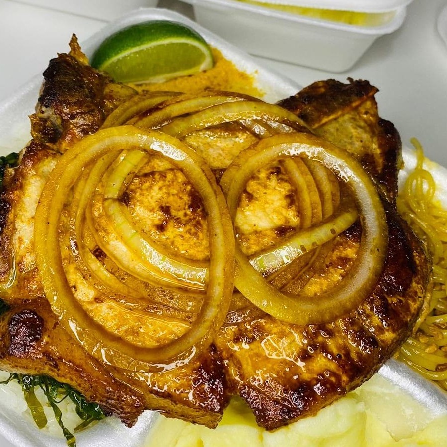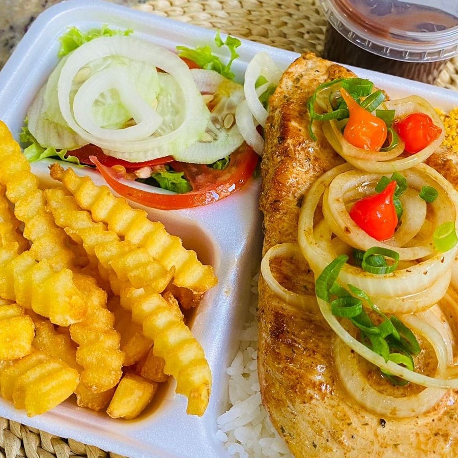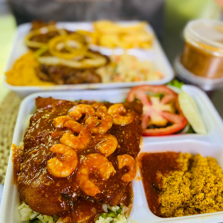 Delicioso filé de peixe com molho de camarao e mussarela derretida e acompanhamentos de sua preferencia. ( vasilha de isopor 750ml e feijão separado)