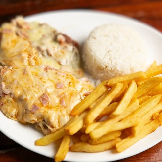 Arroz, feijão, churrasco na chapa(carne, linguiça e frango)