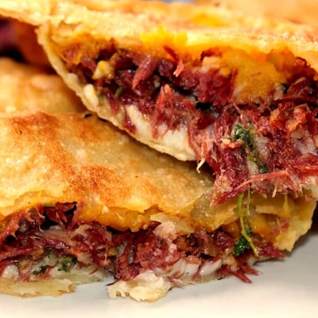 Carne seca desfiada e mussarela derretida! A combinação perfeita de sabores intensos e cremosidade que vai te surpreender.
