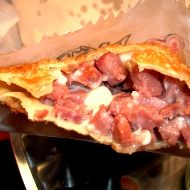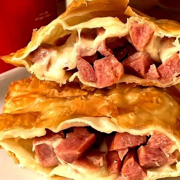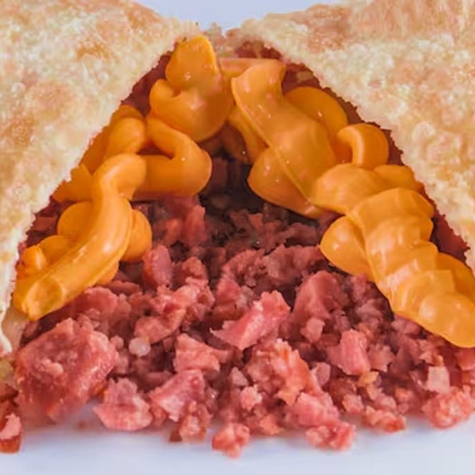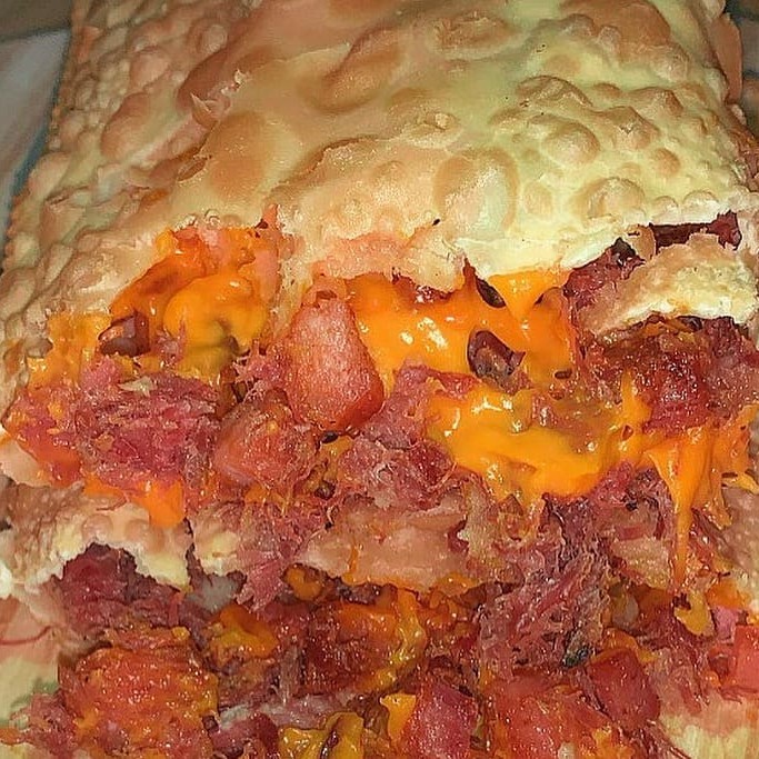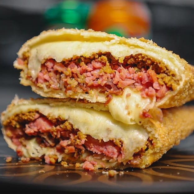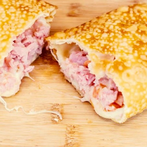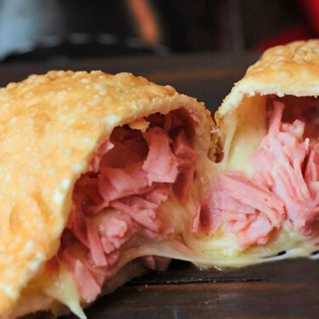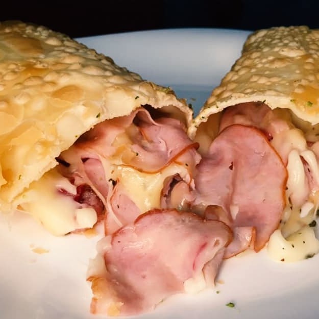 Pastel recheado com queijo mussarela derretido, presunto suculento e cheddar cremoso! Uma explosão de sabor para deixar qualquer um com água na boca.