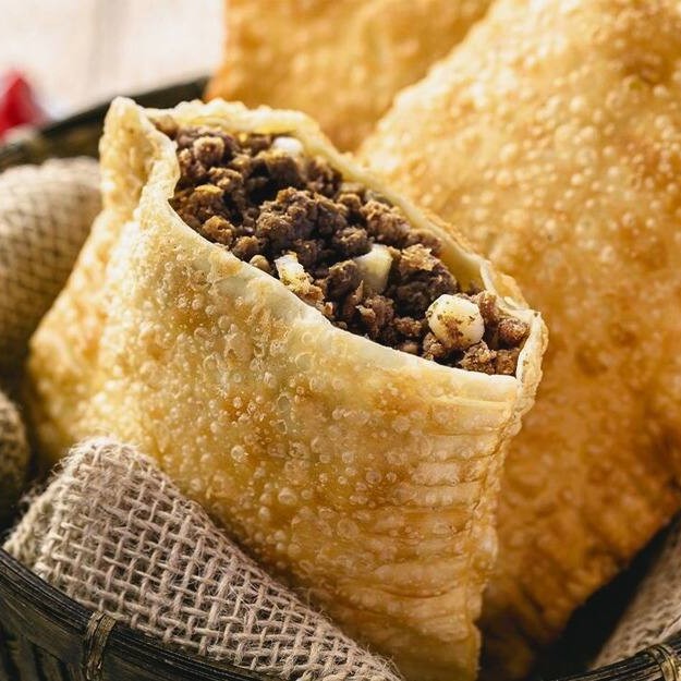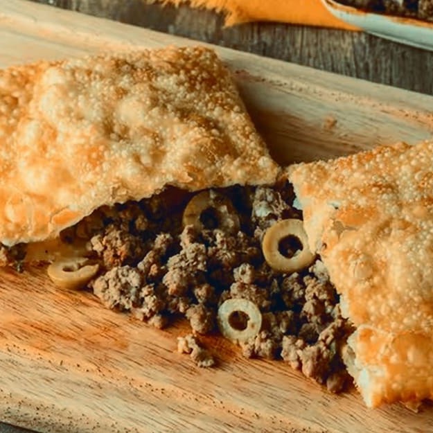 Pastéis crocantes recheados com carne moída e azeitonas! Um toque especial de sabor para você se deliciar.