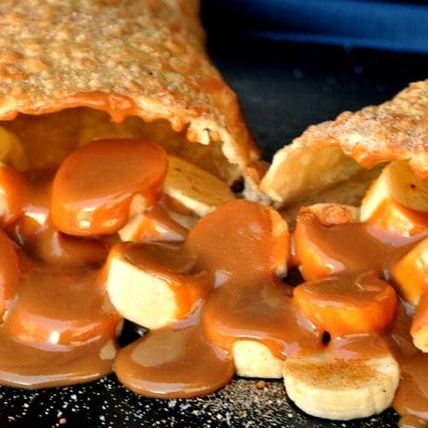 Banana, açúcar, canela e mussarela derretida! Uma combinação surpreendente de sabores para adoçar o seu Dia.