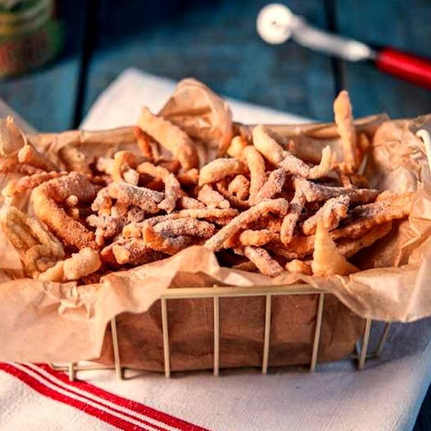 Tiras de massa de pastel frita com açucar e canela! Irresistível...
