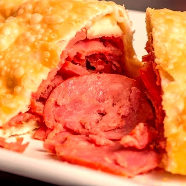 Carne moída, mussarela, presunto, ovos e azeitona! Uma mistura perfeita de sabores que vai te deixar com água na boca.