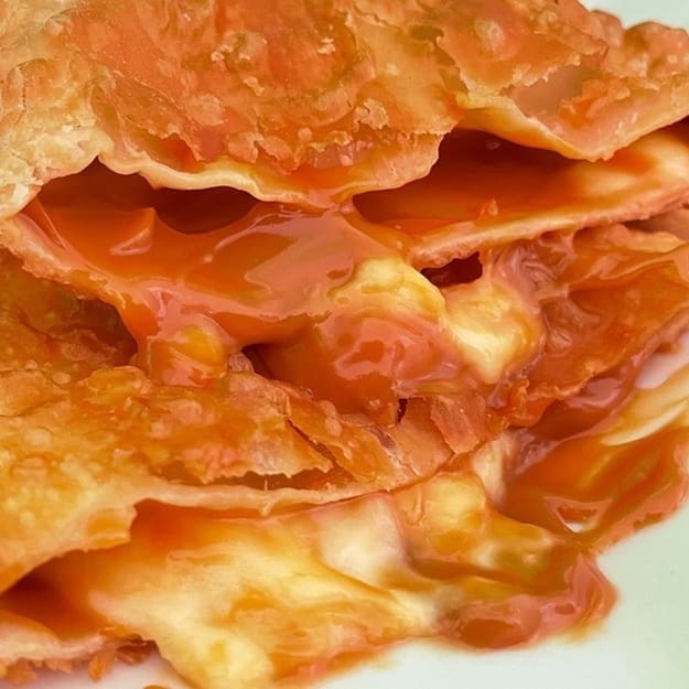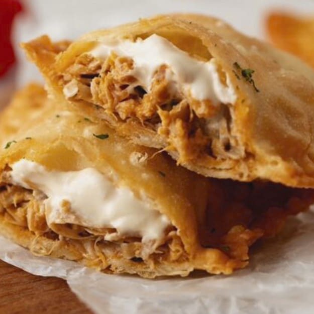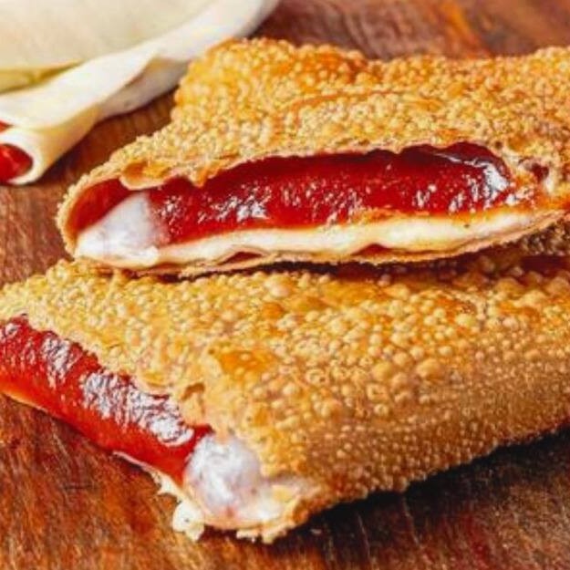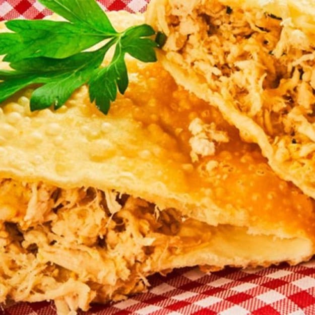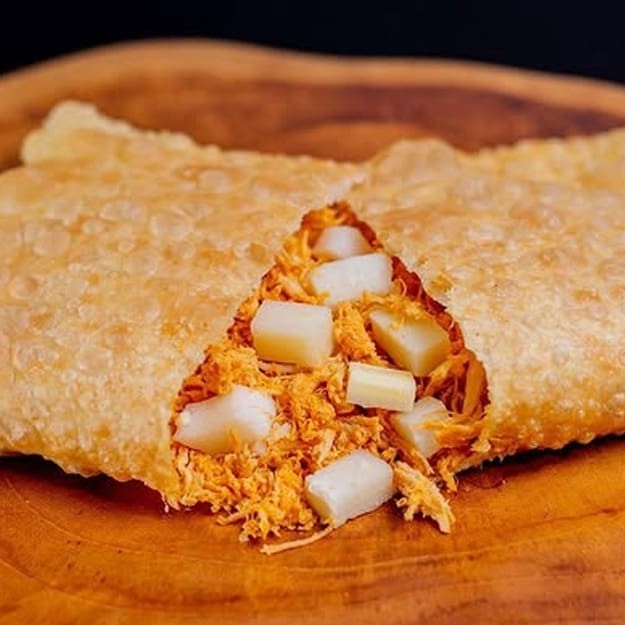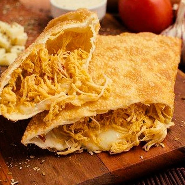 Pastel recheado com frango desfiado e requeijão cremoso! Uma combinação deliciosa e irresistível em cada mordida.