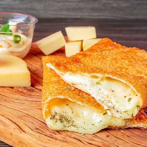 Mussarela derretida, queijo minas, requeijão cremoso e cheddar! Uma verdadeira festa de sabores em cada mordida.