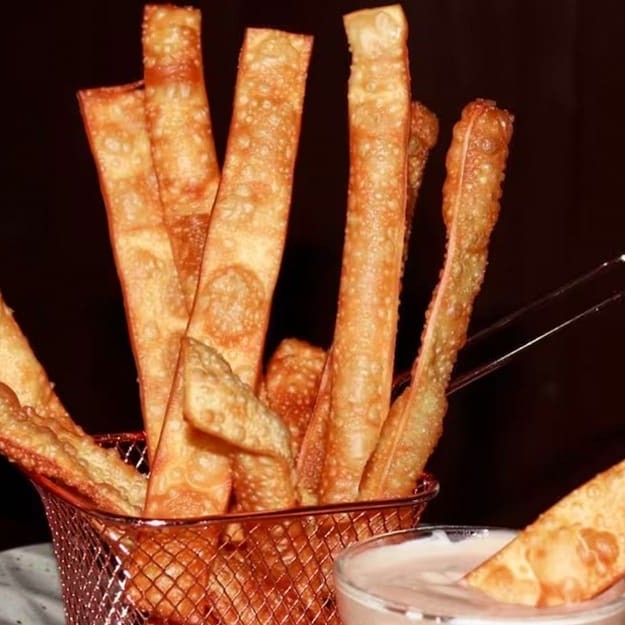 Tiras de massa de pastel frita!