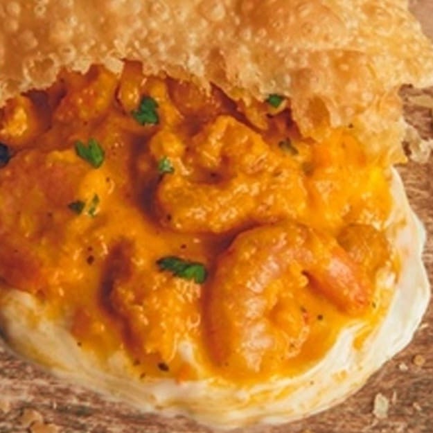 Pedaços suculentos de camarão ao creme! Uma explosão de sabor em cada mordida.