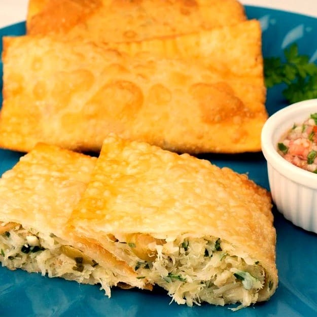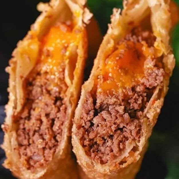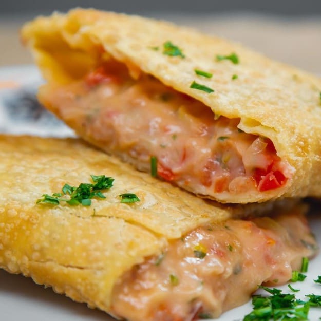 Carne moída e requeijão! Crocantes por fora, cremosos por dentro.
