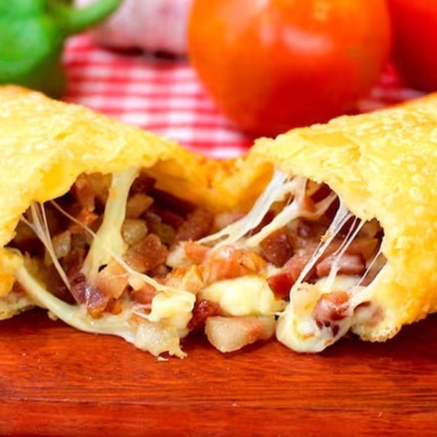 O pastel perfeito existe: carne moída suculenta, mussarela derretendo e bacon crocante! Uma combinação de sabores que vai conquistar você.