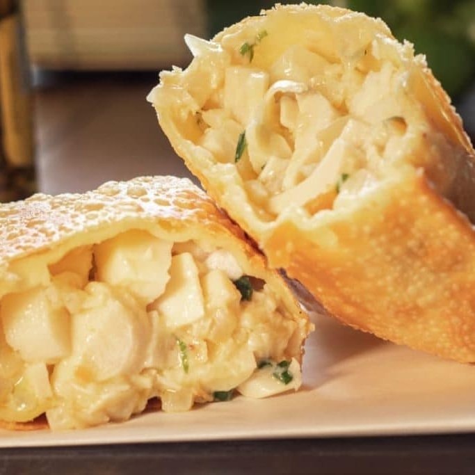 Pastel recheado com frango desfiado, palmito e cheddar cremoso!