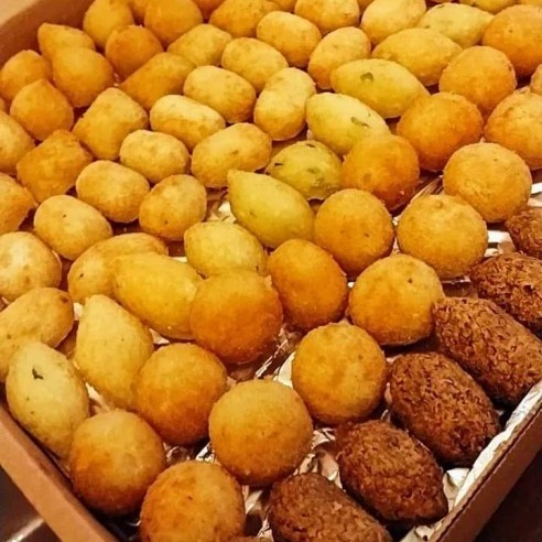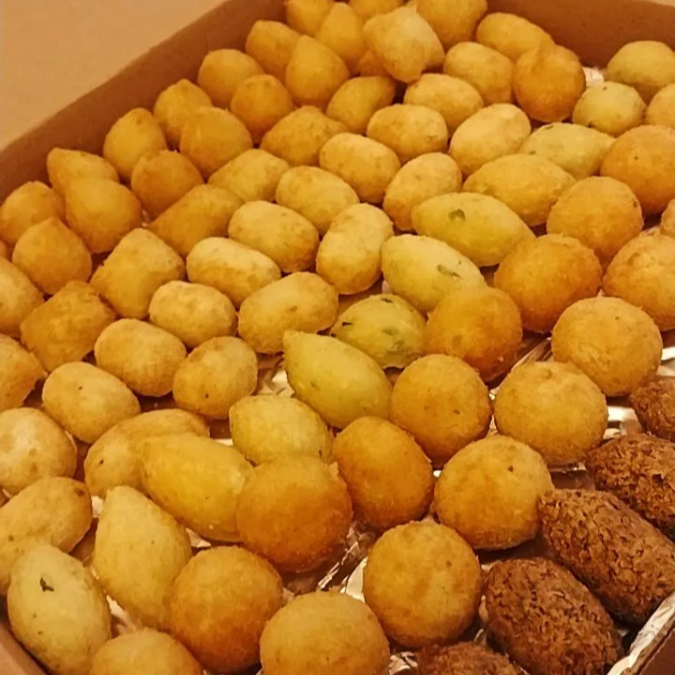 100 salgadinhos sortidos. Coxinha, Bolinha de Queijo, Queijo com presuntp, provolone, peito de peru, kibe recheado, aipim, queijo com alho poró
