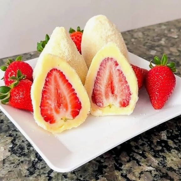 Delicada e irresistível! Preparada com brigadeiro cremoso de Leite Ninho, recheada com morango fresco e finalizada com uma generosa cobertura de leite em pó. O equilíbrio perfeito entre suavidade e frescor.