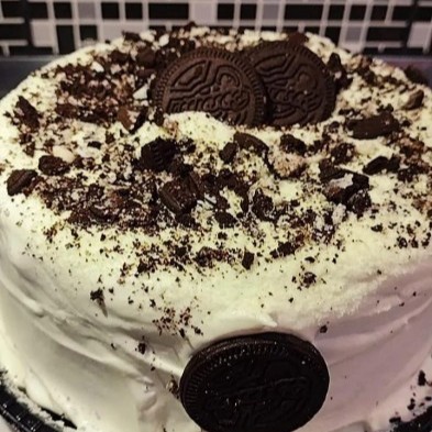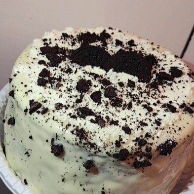 Pedaços de brownie crocante, camadas de recheio de chocolate branco, Recheio de Creme de Oreo. Finalizado com gotinhas de Chocolate Branco e Oreo