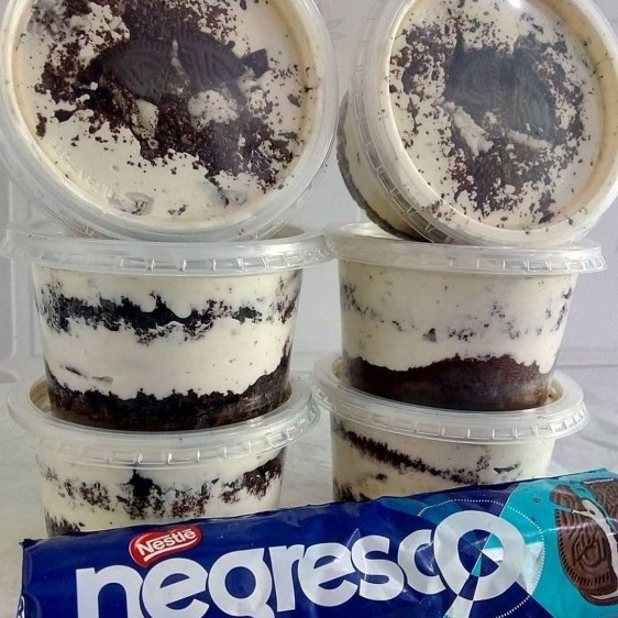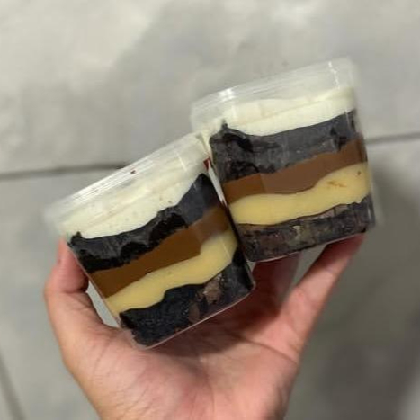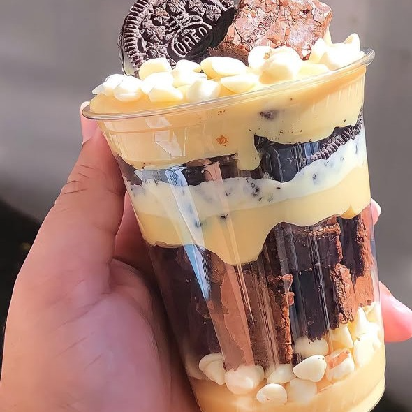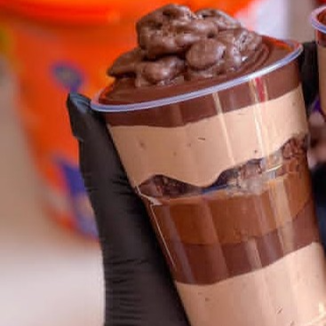 Camadas de Brownie Crocante, intercalado com brigadeiro, ninho e recheio de oreo. Copo 200 ml