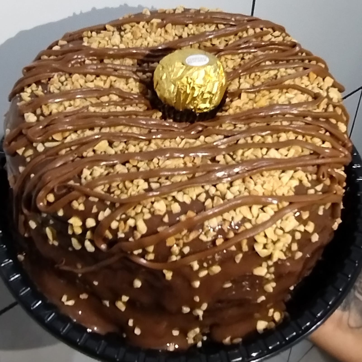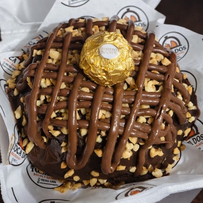 Trago uma releitura do bombom ferrero rocher, o bolo vulcão. Tamanho 13 cm é bem servido é recheado no centro com um creme de Nutella e coberto com calda de brigadeiro blend. Finalizado com Amendoim, Nutella e o bombom ferrero. Bolo bem molhadinho do jeito que você gosta!