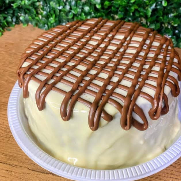 Massa fofinha e molhadinha, brigadeiro bem cremoso de Ninho, fios generosos de Nutella. Bolo bem servido 13 cm