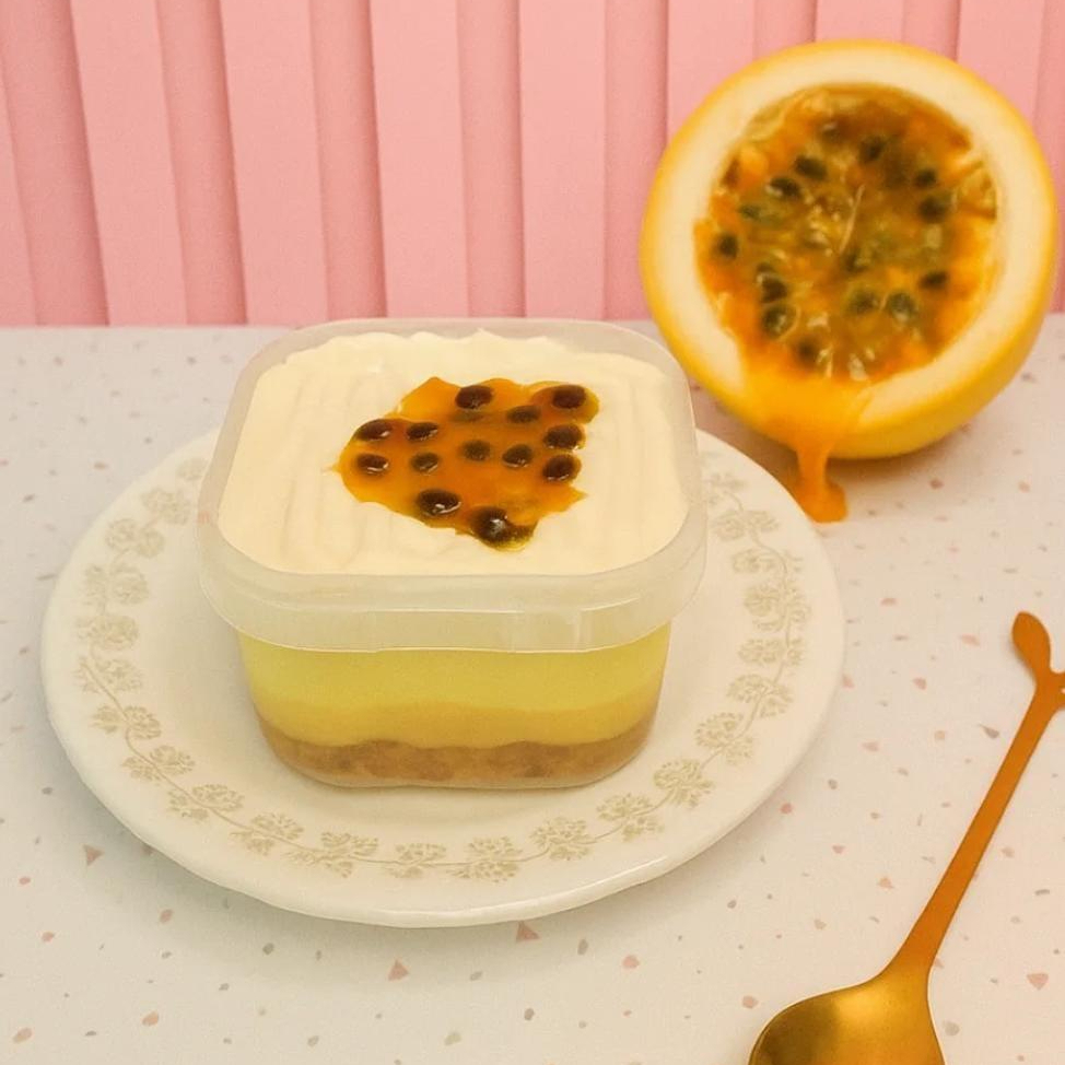 Nossa torta gelada é composta de uma farofinha crocante de biscoito, camada de recheio de brigadeiro branco cremoso, mousse artesanal de maracujá. Finalizado com mousse de ninho e geleia artesanal de maracujá