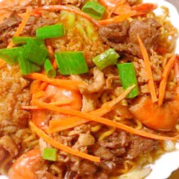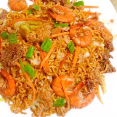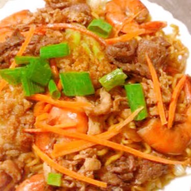 Macarrão, carne,frango ,camarão, cebola, cebolinha, cenoura, repolho, couve-flore molho de shoyu
