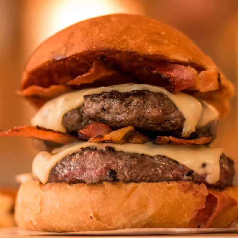 PÃO AUSTRALIANO BLEND DE 200G QUEIJO CHEDDAR DERETIDO QUEIJO MUSSARELA GRATINADA CEBOLA CARAMELIZADA FARELO DE BACON E MAIONESE ARTESANAL