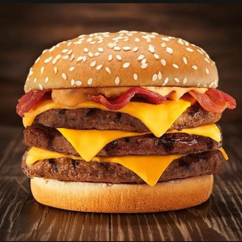 pão, 2 carne sabor picanha, 2 ovos, queijo, presunto,bacon, calabresa, salada e molhos