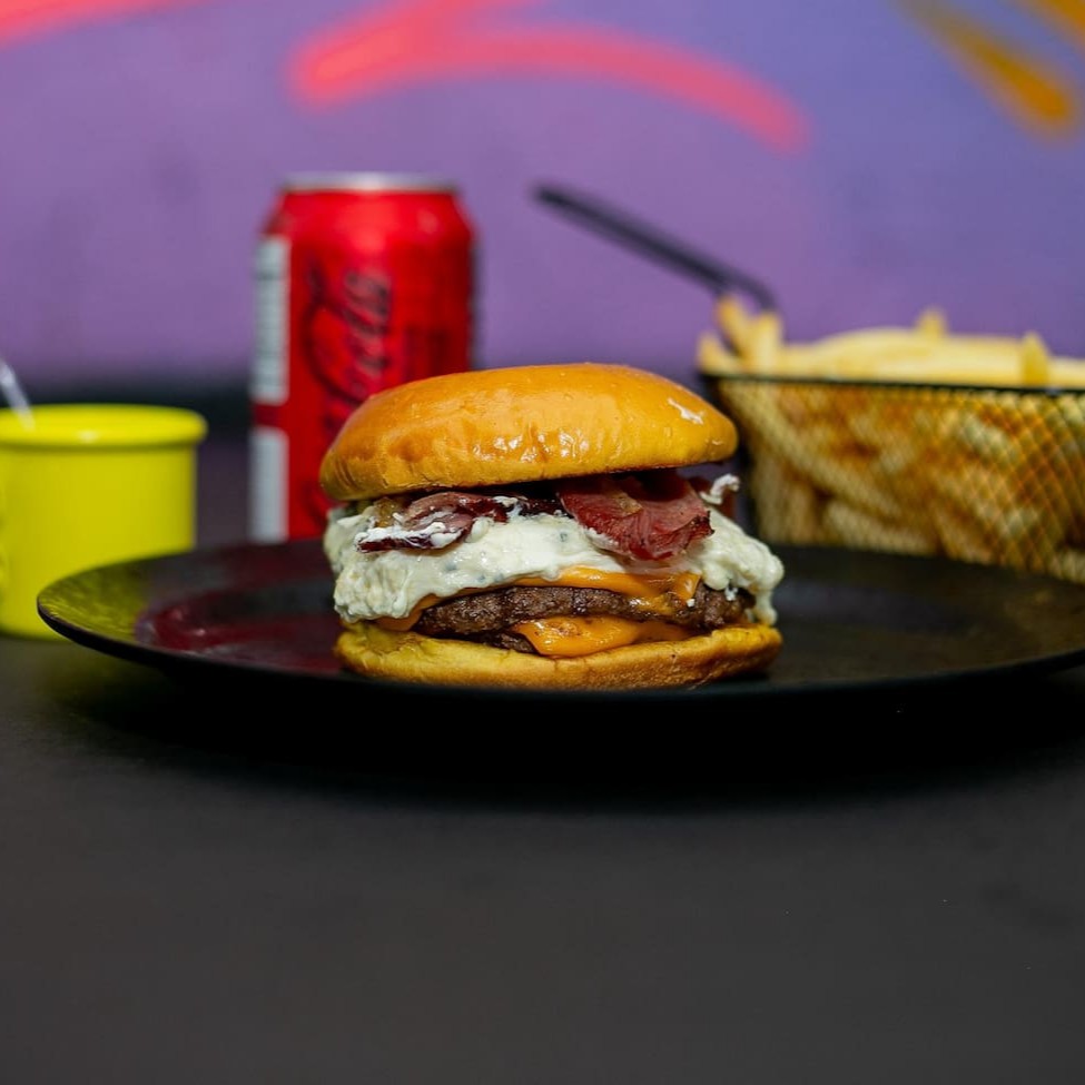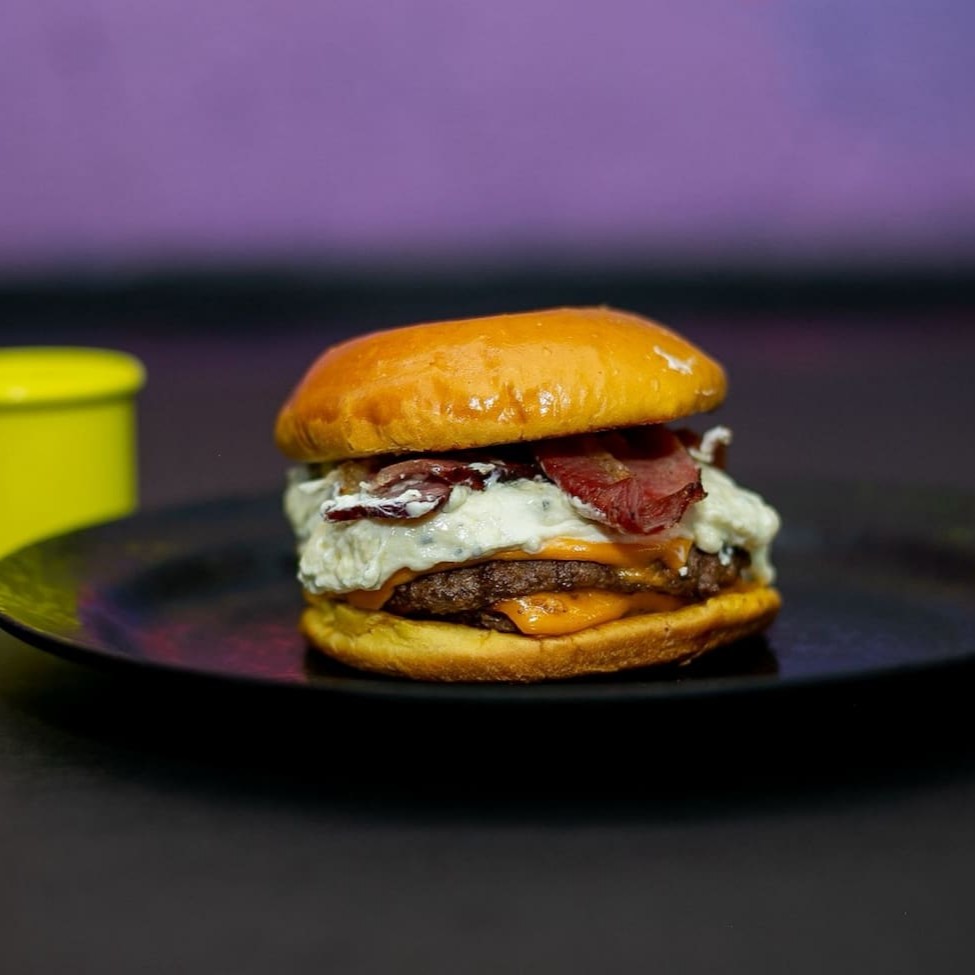 Pão brioche, blend de carne 90g , queijos, bacon fatiado e molho gorgonzola