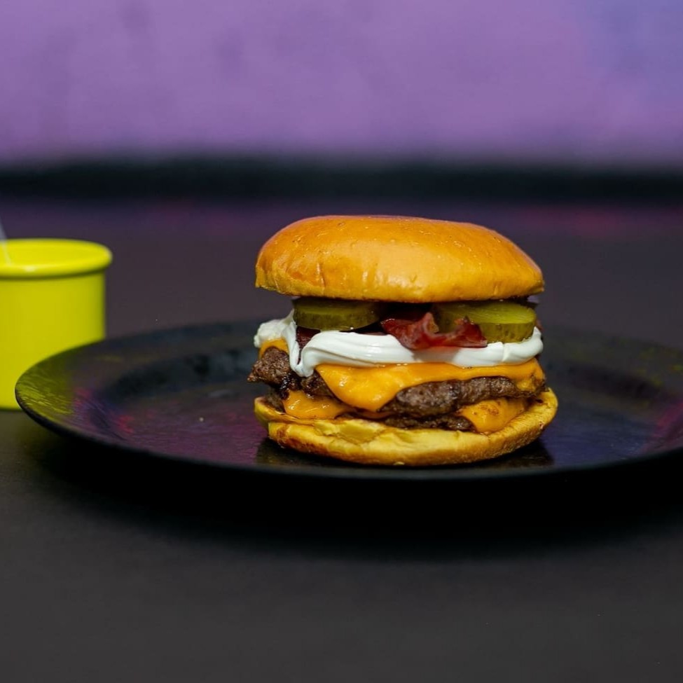 Pão brioche, blend de carne 90g , queijos, picles, bacon fatiado e cream cheese.