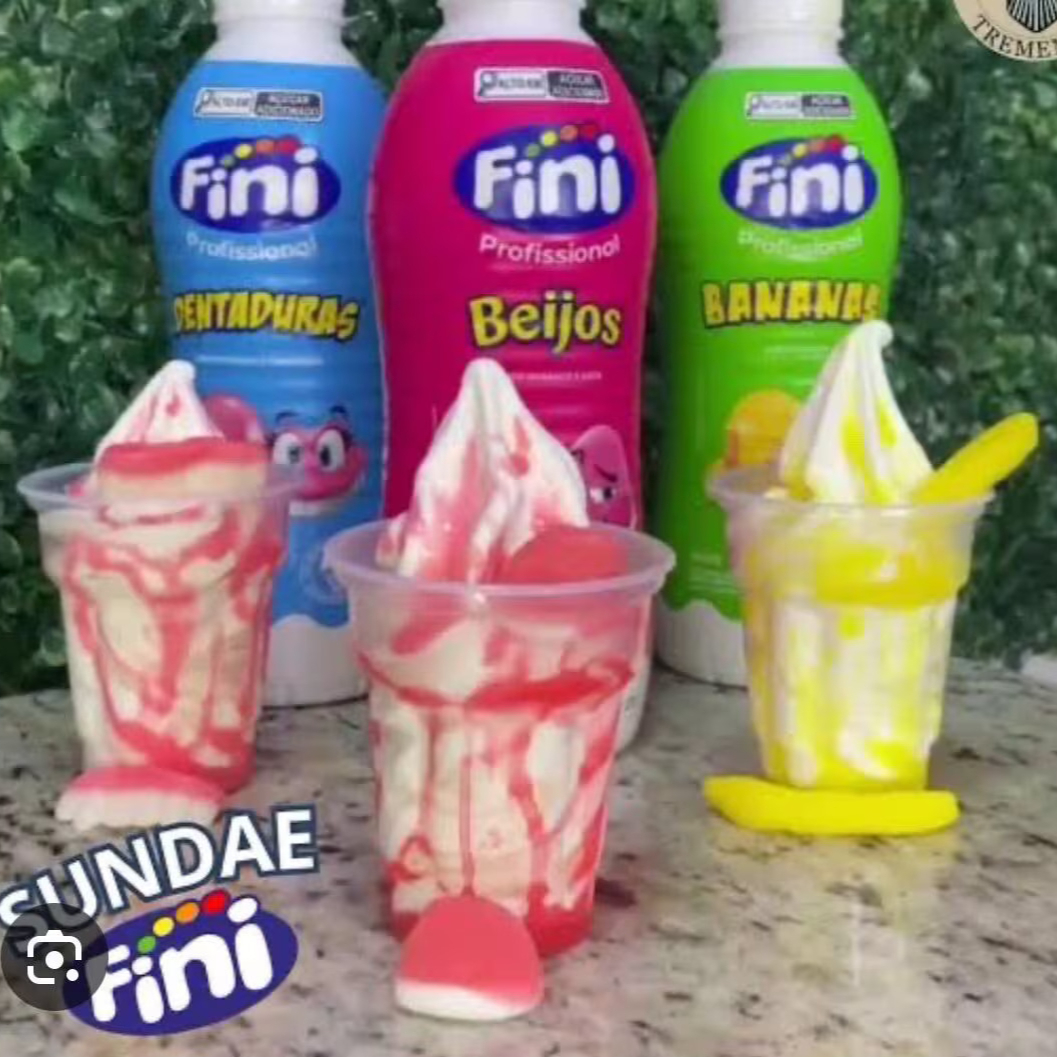 Sorvete divertido com Fini Dentaduras e calda especial.