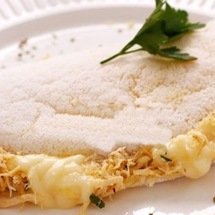 Tapioca de frango desfiado refogadinho combinado com CreamCheese que dá aquela cremosidade deliciosa e finalizado com aquela pitada de orégano!