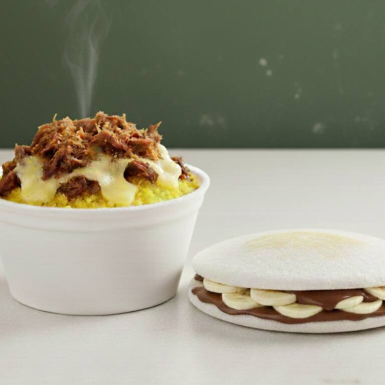 Um combo de respeito! Comece com um cuscuz bem macio, recheado com carne seca desfiada refogada e queijo derretido — tudo no ponto e pra fechar com chave de ouro, a queridinha banana com Nutella numa tapioca leve e cremosa. Perfeito pra quem curte sabor de verdade, do salgado ao doce!