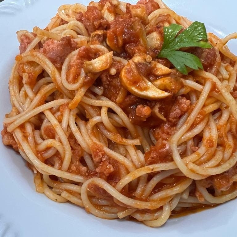 Tradicional Putanesca feito com tomates, cebola, alho, salsa, azeitonas, alcaparras e aliche