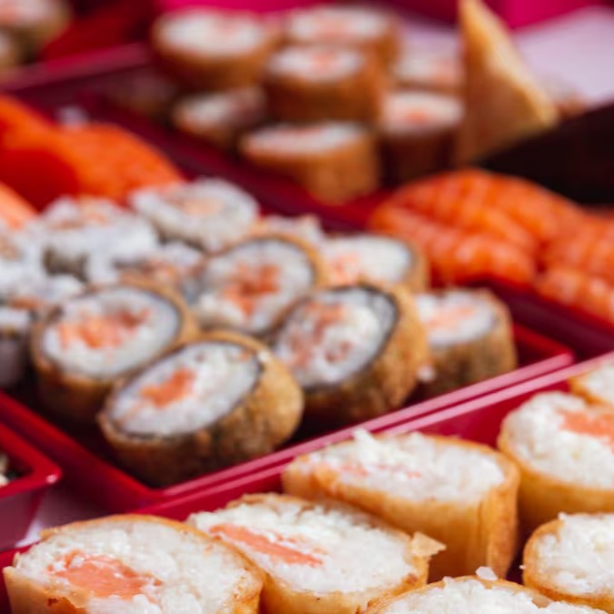 Uma oferta imperdível na categoria de Promoções: 12 Hot Philadelphia de Salmão. Se delicie com o sabor inconfundível do salmão fresco, envolto numa camada crocante irresistível. Esta iguaria é feita com a técnica Philadelphia, que realça a textura e o sabor do salmão. É uma combinação perfeita de sabores que irá envolver seu paladar em uma experiência gastronômica única. Este prato é a escolha ideal para os amantes de sushi que valorizam a qualidade e o sabor em cada mordida. Aproveite essa promoção incrível!