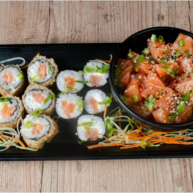 Nova promoção: 16 sushis ou sashimis (salmão, atum, peixe branco, Skin ou Kani) por apenas R$49,90 aproveite!
