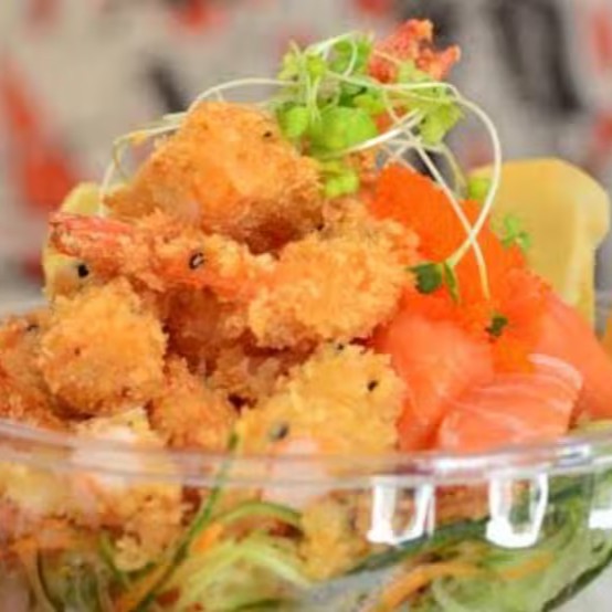 Delicie-se com o nosso Uaupoke Salmão e Pipoca de Camarão, um prato da categoria Poke Uauuuu. Este deslumbrante poke é uma combinação de arroz suavemente cozido, salmão fresco e tenro, pipoca de camarão crocante, cream cheese cremoso e cebolinha picada, tudo regado com um molho teriyaki sedutoramente doce e salgado. Com um peso generoso de 230 gramas, este prato é garantia de uma refeição satisfatória e deliciosamente equilibrada.