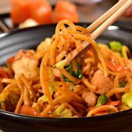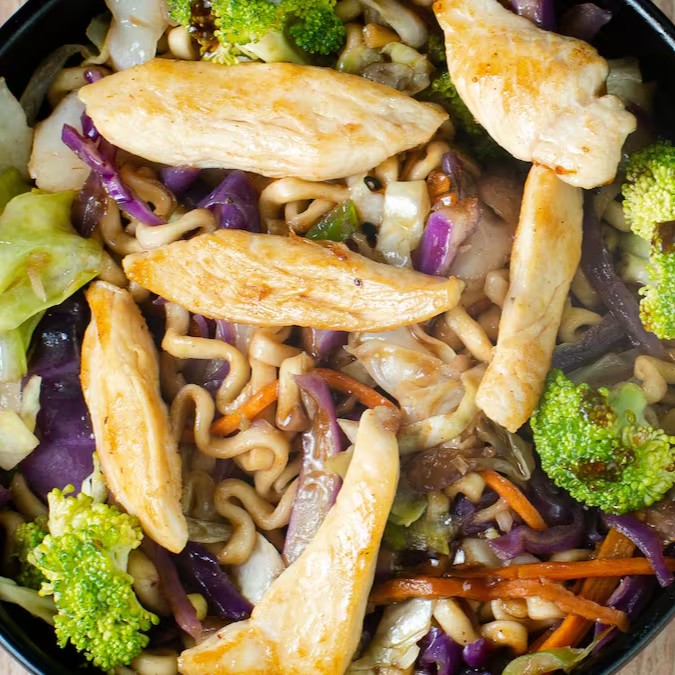 Delicioso yakisoba com pedaços de frango grelhado, legumes refogados e molho especial da casa. Escolha o tamanho :d