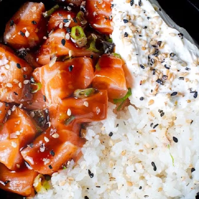 Este 'Uaupoke Salmão e Atum' é uma explosão de sabores marinhos. Cuidadosamente preparado, este prato traz uma base de arroz delicadamente cozido, coberta com generosos pedaços de salmão e atum frescos e de alta qualidade. Adicionamos uma pitada de cebolinha picada para proporcionar um toque crocante e fresco. O molho teriyaki, com sua doçura equilibrada e sabor umami, intensifica a experiência, enquanto o gergelim torrado adiciona uma textura adorável e um aroma irresistível. Com um peso total de 230 gramas, este Poke é a refeição perfeita para quem busca um prato leve, nutritivo e extremamente saboroso. Prepare-se para uma verdadeira viagem gastronômica com o nosso 'Poke Uauuuu'!