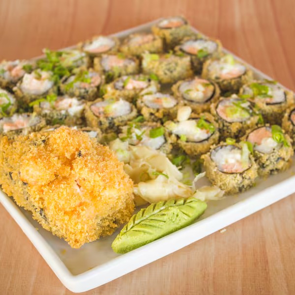 Apresentamos o '24 Hot Salmão Crocante + 1 Guaraná Leão 300ml', um prato imperdível para apreciadores da culinária japonesa. Este prato contém 24 unidades do nosso impecável Hot Roll de Salmão Crocante, preparado com destreza e frito até alcançar a crocância perfeita. Para harmonizar, acompanha 1 Guaraná Leão de 300ml, uma bebida brasileira tradicional, refrescante e saborosa, proporcionando um contraponto perfeito. Experimente esta deliciosa combinação e desfrute do melhor da nossa categoria 'Hot Crocante mais barato'. Uma experiência gastronômica completa e gratificante.