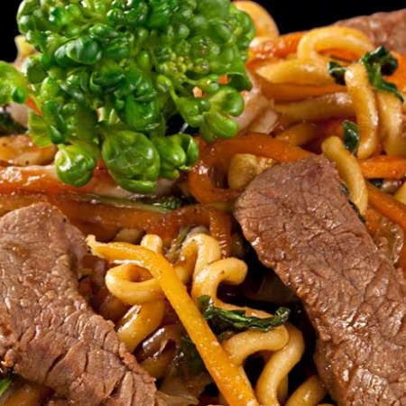 Delicioso yakisoba com pedaços de frango e carne, legumes refogados e molho especial da casa. Escolha o tamanho :d
