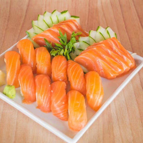 2 Sashimis De Salmão + 2 Sushis De Salmão + 12 Hots + 12 Fila + 6 Ura De Salmão
