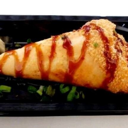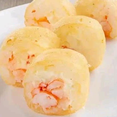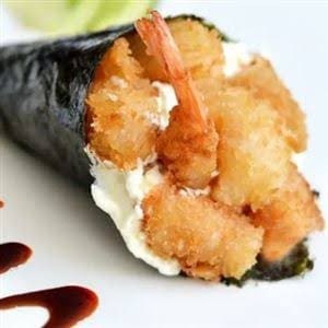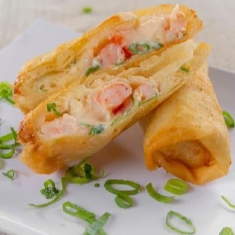 Massa de harumaki com recheio de camarão, creme cheese e cebolinha. Acompanha molho agridoce.